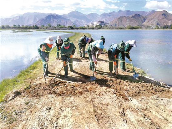 湿地湿润的气候和肥美的水草在高原上十分难得,对保持拉萨市区空气湿度起到了重要而不可替代的作用。拉鲁湿地作为我区最大的城市湿地,是几十万拉萨市民的“供氧基地”。为有效改善湿地内及周边环境,提升湿地“氧吧”效应,连日来,城关区洁达园林公司迅速行动,组织工作人员入场洒水、翻土、播种草种。