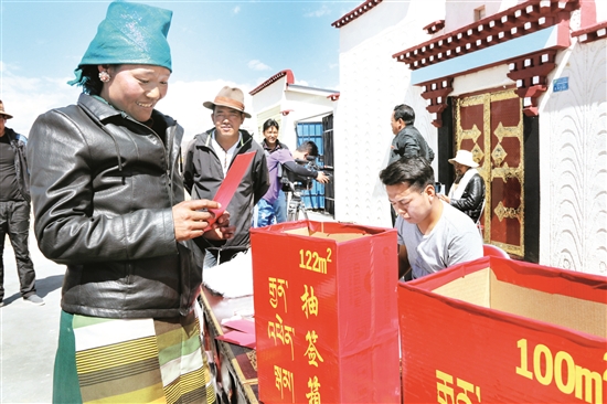 据了解,此次分配的房屋分别为50平方米、80平方米、100平方米、120平方米、150平方米、180平方米六种户型。该乡主要责任部门严格按照“户申请、组评议、村初定公示、乡复核、县审定公告”的程序核实认定,精准锁定搬迁对象51户253人。仪式上,强嘎乡乡干部对精准扶贫、精准脱贫以迁政策进行了宣讲,详细讲解了集中搬迁安置点工程建设质量、入住的程序、条件、分房的标准、房屋编号和抽签流程。随后,伴随着喜悦的鞭炮声,搬迁户们井然有序地进行了抽签。
